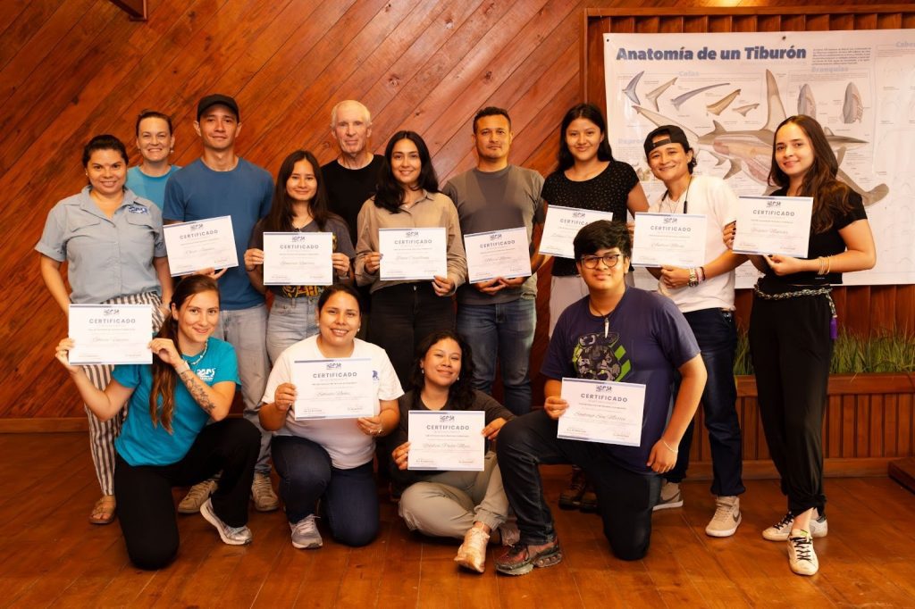 Dr. David Ebert menciona que “Aprender la taxonomía de los tiburones es la base fundamental de cualquier política de conservación o manejo. No se puede desarrollar una política o una ley sin conocer a las especies involucradas.” El taller reunió a participantes de distintas trayectorias profesionales, entre los que se encontraban miembros de organizaciones co-manejadoras de áreas protegidas, representantes de la sociedad civil dedicada a la conservación marina, autoridades locales como el Instituto de Conservación Forestal (ICF), estudiantes universitarios y buceadores de la zona.