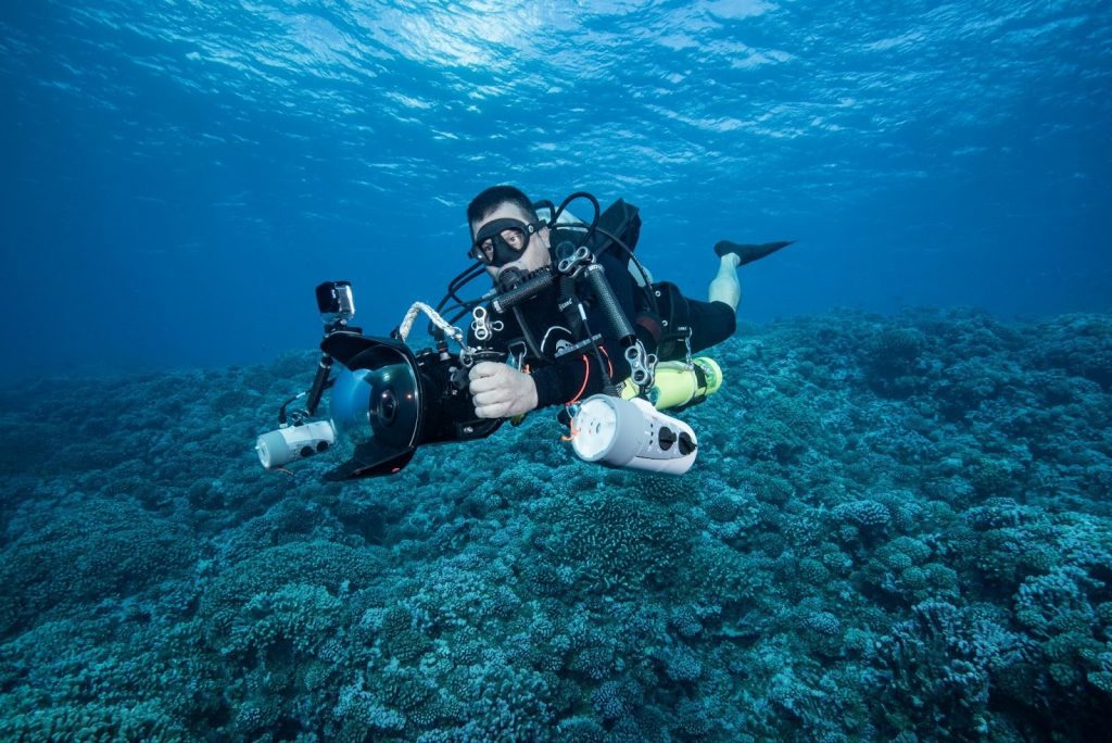 “En ese momento ni siquiera pensaba en dedicarme seriamente a la fotografía submarina. Pero durante el viaje observé a científicos realizando investigaciones fascinantes: recolectando datos sobre microplásticos, estudiando la salud de los corales y documentando la vida marina. Empecé a fotografiar su trabajo, tanto por encima como por debajo del agua, y me interesé en cómo podía usar mis habilidades para apoyar su labor.”