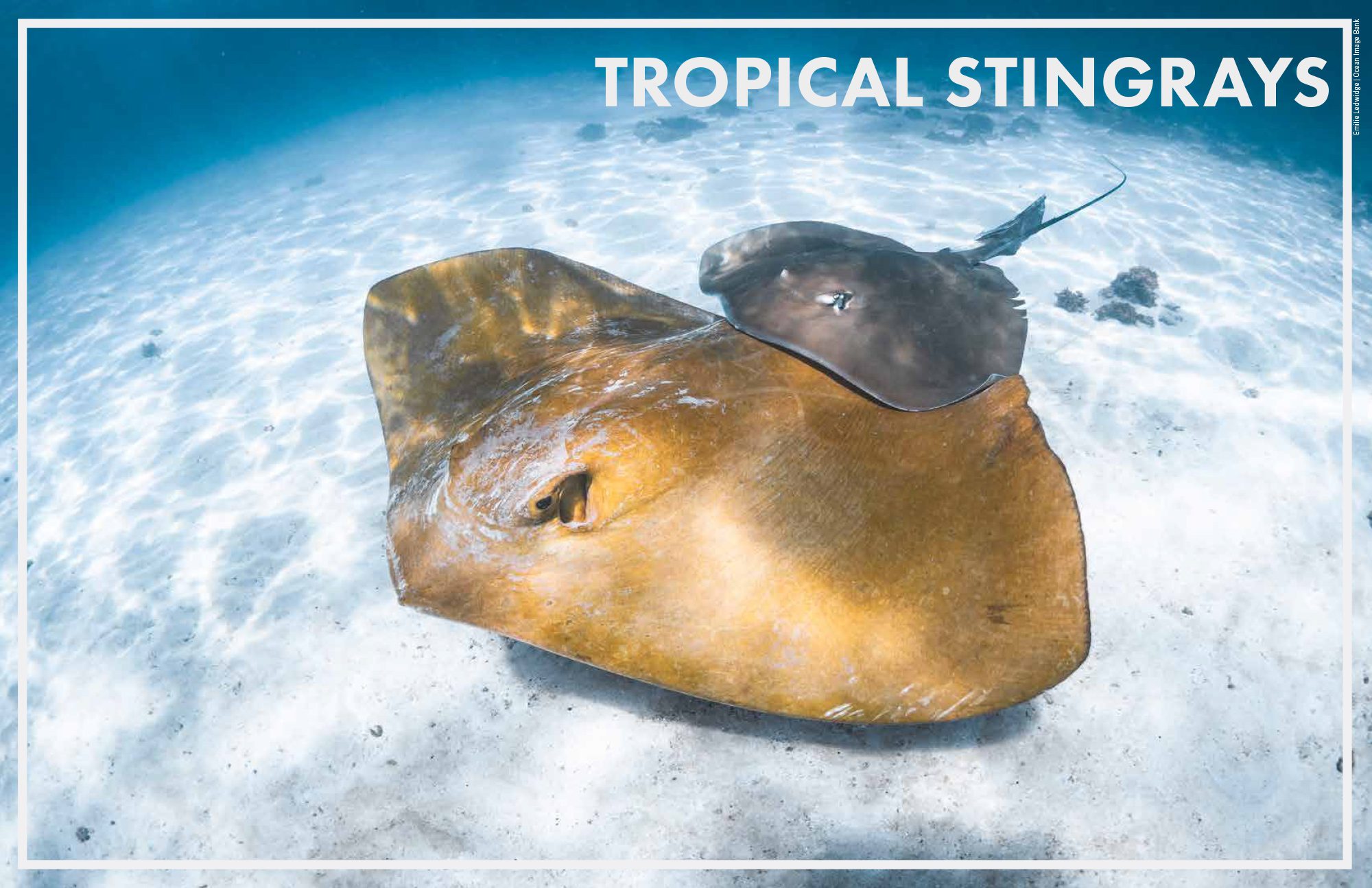 Tropical stingrays include benthic stingrays (Batoidea: Myliobatiformes) that spend most of their life in tropical and subtropical marine environments. They have round or rhomboidal disc-shaped bodies, are dorso-ventrally compressed with ventrally located mouths and gills, and have large openings by their eyes known as spiracles; all traits that facilitate life on the seafloor (Aschliman et al., 2012). Tropical stingrays exhibit undulatory swimming that does not require tail propulsion, yet their tails can be longer than the width of their disc, with one or more caudal barbs or ‘stings’ (Last et al., 2016). All stingrays are viviparous with litters of one to ten pups and gestation periods of three to 12 months (Last et al., 2016). Tropical stingrays encompass 110 known species across three families (Last et al., 2016; Stein et al., 2018), including 91 Dasyatidae species (all except one freshwater and one pelagic species – Chindwin Cowtail Ray [Makararaja chindwinensis] and Pelagic Stingray [Pteroplatytrygon violacea], respectively), 17 species in two genera in the family Urotrygonidae, and two species in the genus Styracura (family Potamotrygonidae; Table 1).